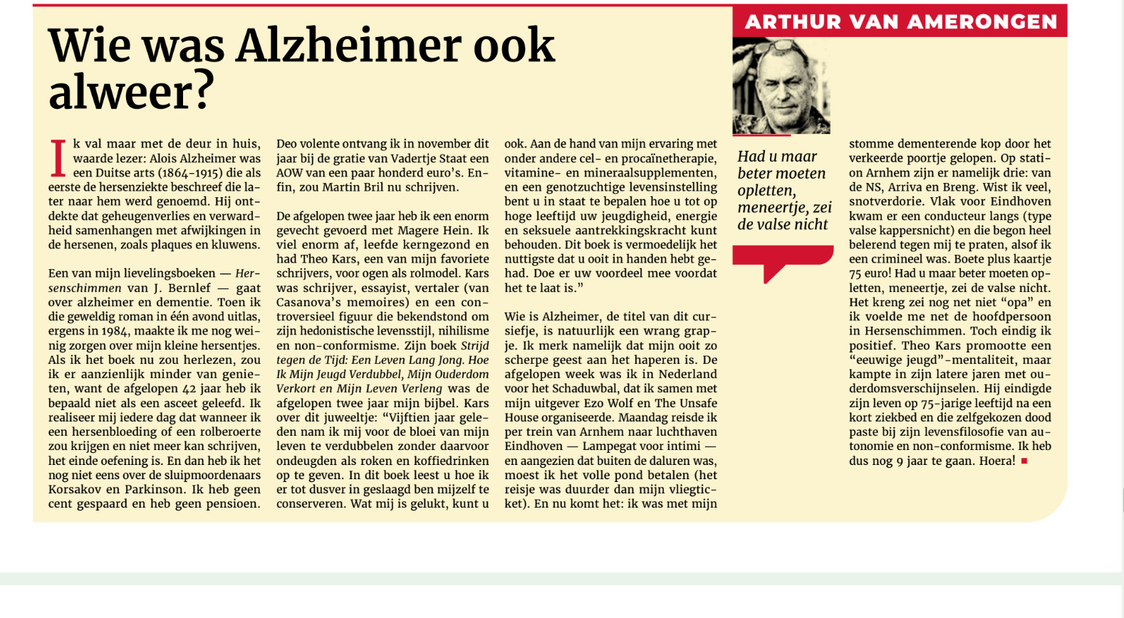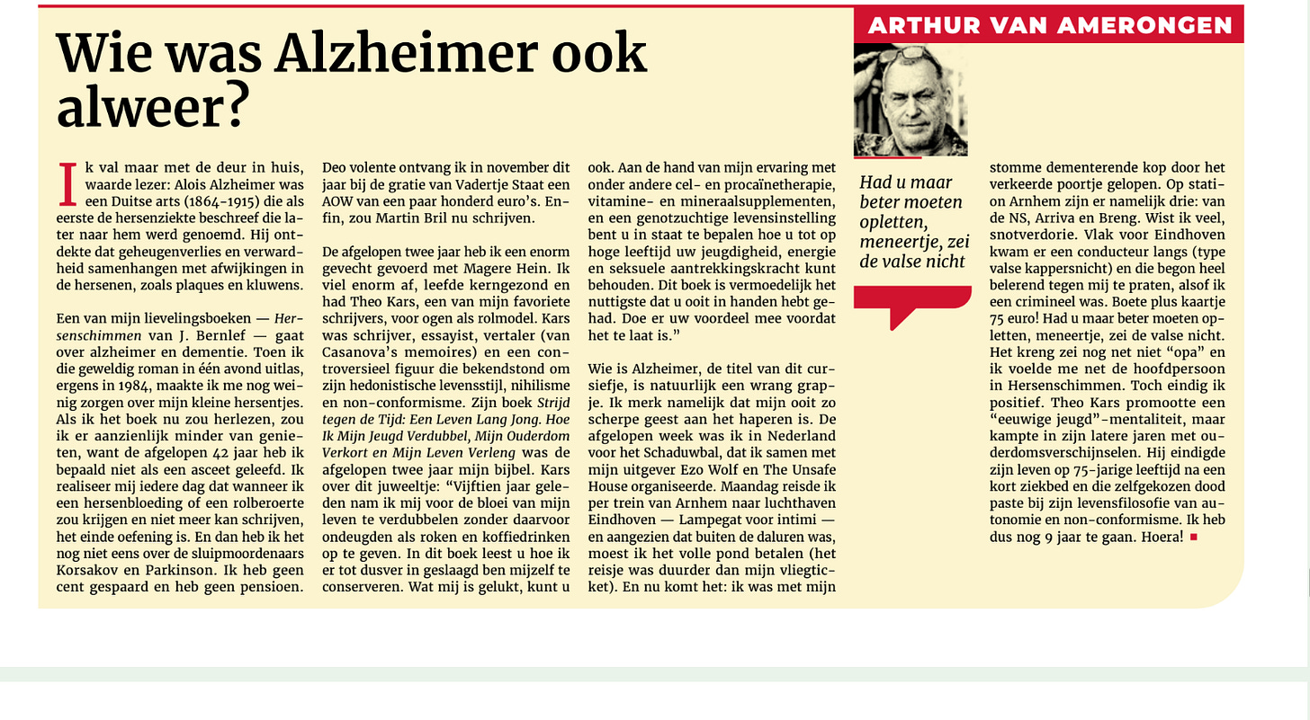Dan toch maar tot in lengte van jaren columns blijven schrijven, dat levert u centen op, en ons lezers heel veel plezier!