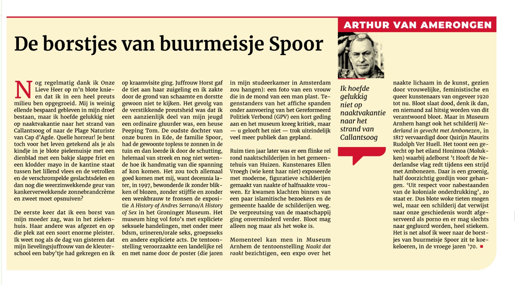 Deed me denken aan de jonge diplomaten van de ambasssade van de Soedan in Den Haag die in de zomer graag naar de boulevard in Scheveningen gingen. Want op de aanpalende terrasjes lagen vrouwen open en half-bloot te zonnen. Die Soedanezen konden er niet over uit! Dat dat zo maar mocht allemaal. Ik praat nu over de jaren 80. Ik weet niet of ze daar nog steeds met blote tieten liggen.